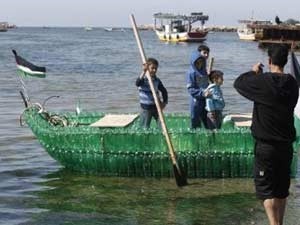• காலி குளிர்பான பாட்டில்களால் காஸா நண்பர்கள் உருவாக்கிய படகு!!
