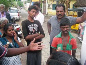 இதனால் அதிர்ச்சி அடைந்த பொதுமக்கள் திரண்டு வந்து மகேந்திரனையும், தனசேகரையும் பிடித்து வைத்து சரமாரியாக அடித்து உதைத்தனர். படுகாயமடைந்த இருவரையும் ரெயில்வே கேட் அருகில் உள்ள பிள்ளையார் கோவில் வாசலில் பிடித்து வைத்து கூடுவாஞ்சேரி போலீசுக்கு தகவல் கொடுத்தனர்.