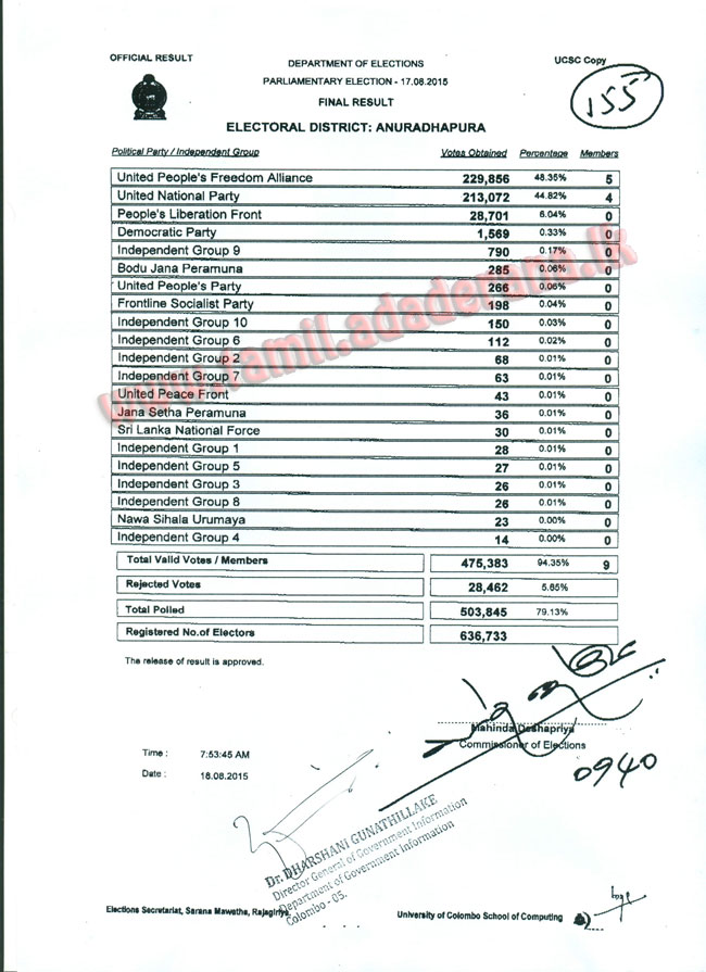 • அநுராதபுரம் மாவட்டத்தின் இறுதி முடிவுகள்!!